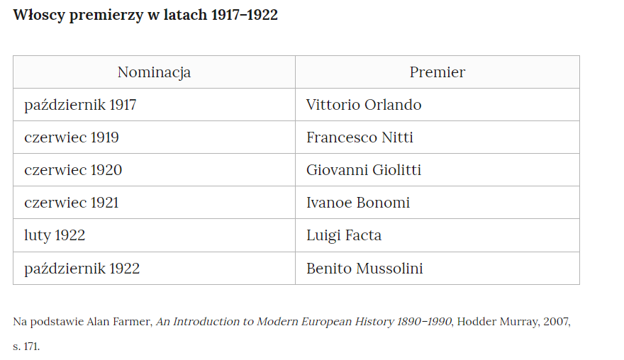 1. Opisz sytuację wewnętrzną we Włoszech po zakończeniu I wojny światowej.